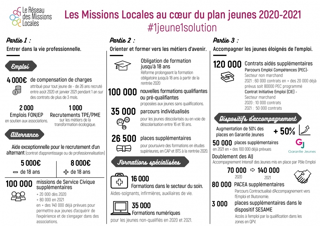 En résumé, le Plan #1JEUNE1SOLUTION : 3 axes
